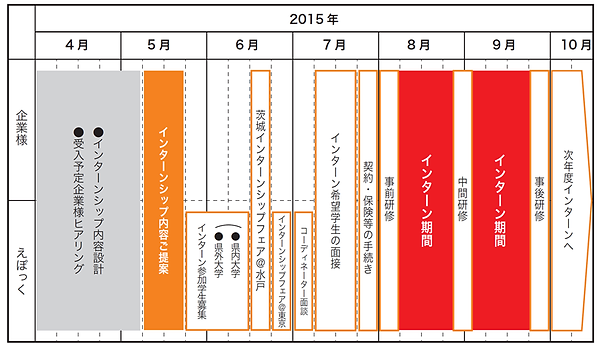 2015年度の夏インターンシップの実施スケジュール例です。